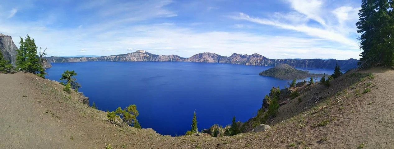 If you've never heard of Crater Lake, it's a caldera (cauldron-like volcanic) lake formed about 7,700 years ago by the collapse of the volcano Mount Mazama. It's the deepest lake in the United States at 1,943 feet, and the seventh deepest in the world!